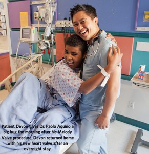 “The Melody Valve can reduce the need for open heart surgery for many of our patients – surgery which may require longer recovery times than recovery from cardiac catheterization, “ said Dr. Aquino. “Being able to replace a valve without major surgery is an important breakthrough in preserving our patients’ health and ensuring they have the best quality of life possible. Less time in the hospital and recovering means that our patients can get back to doing what they do best – just being kids.”